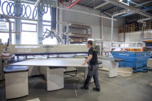 Marco Galet is afgelopen december begonnen als eindverantwoordelijke van de Prefab en Interieurfabriek. Hij heeft ervoor gezorgd dat de fabriek nog efficiënter is ingedeeld. Met de moderne opdeelzaag en het geautomatiseerde platenmagazijn kunnen ze alle onderdelen op maat zagen. Momenteel is het bedrijf in afwachting van de levering van een aantal nieuwe machines en dan kunnen ze echt op volle kracht aan de slag. Het bedrijf blijft groeien en is dan ook dringend op zoek naar frisse energie op de werkvloer. ‘We blijven groeien. Vandaar dat we altijd wel vacatures hebben openstaan. We zoeken interieurbouwers voor de binnen- en buitendienst, logistieke collega’s, werkvoorbereiders en een administratief/secretarieel medewerker.